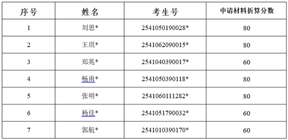 经考生申请,2025年4月20日焦作大学招生工作领导小组会议讨论,学校认定,以下考生符合《焦作大学2025年高职单独考试招生章程》中职业适应性(职业技能)测试加分规定,予以加分。