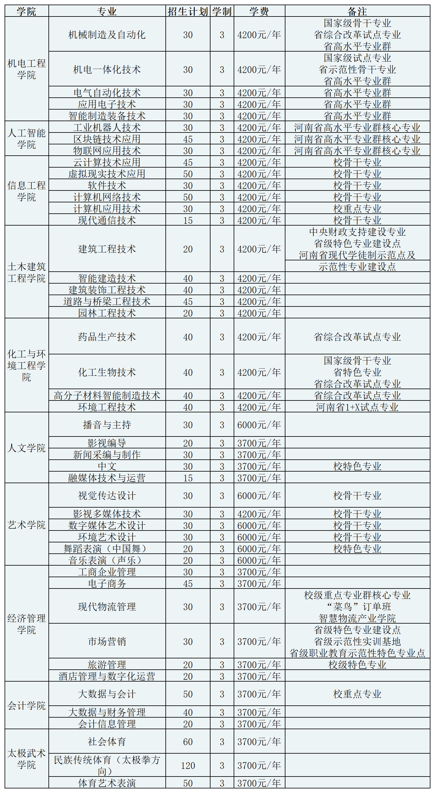 焦作大学2026年单招计划